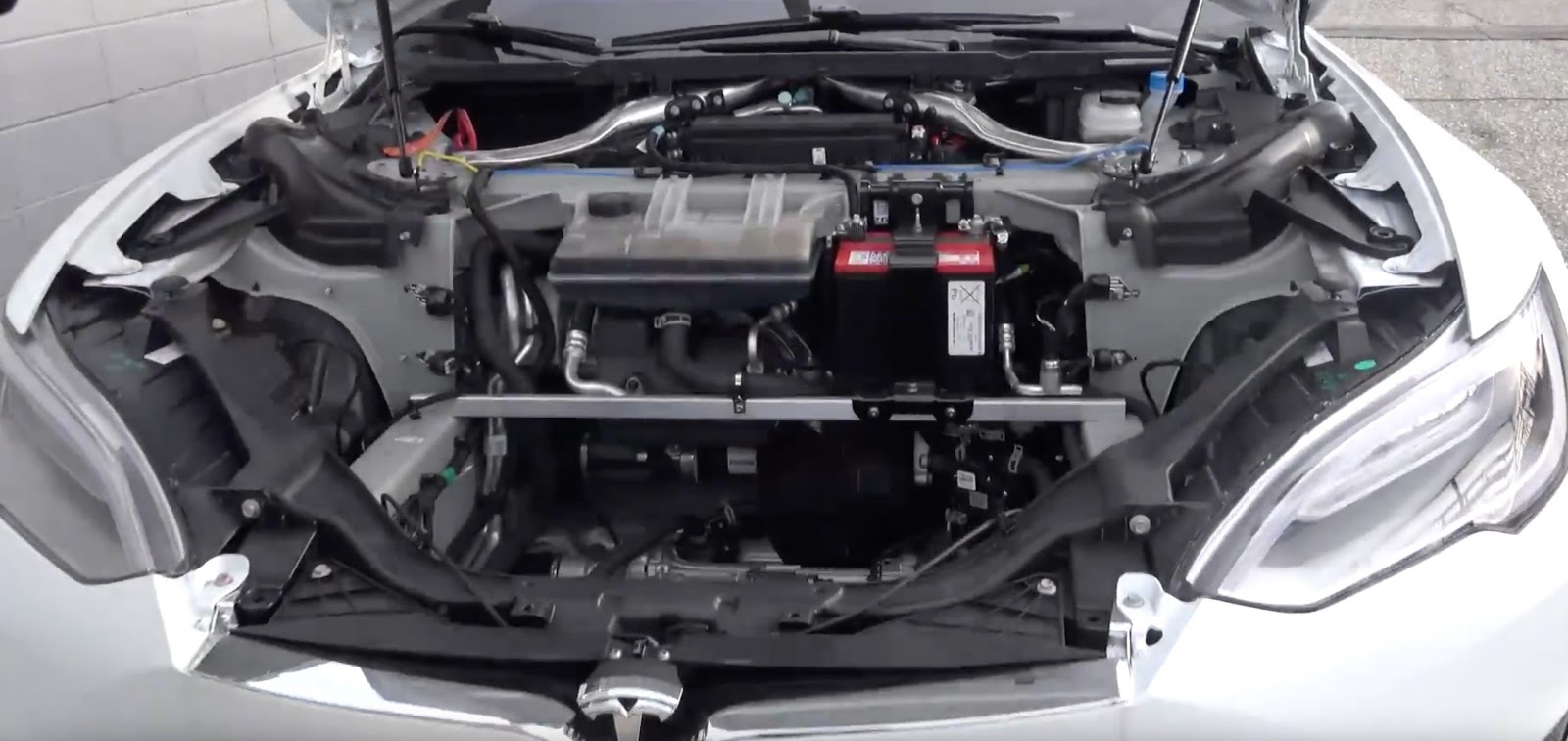 Tesla Racing Channel posłuchał sugestii Muska i usunął wszystko spod maski Tesli, co tylko było możliwe w celu zredukowania masy pojazdu.